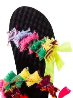 Sandales à brides habillées de tissus banana vintage rose et kaki.