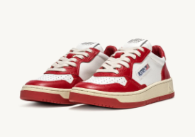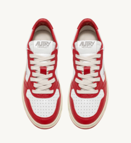Baskets basses en cuir lisse blanc et empiècements en cuir Nile rouge.