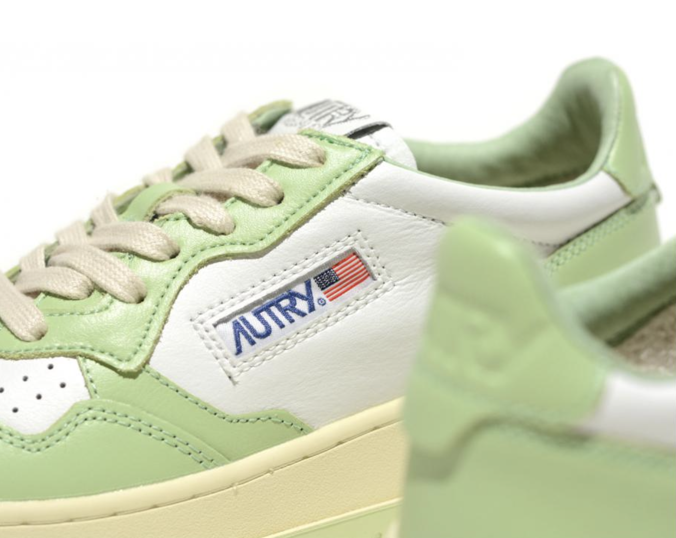 Baskets basses en cuir lisse blanc et empiècements en cuir Nile green.