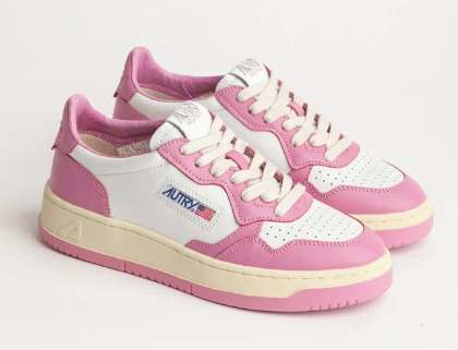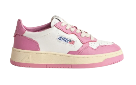 Baskets basses en cuir lisse blanc et empiècements en cuir Nile mauve.