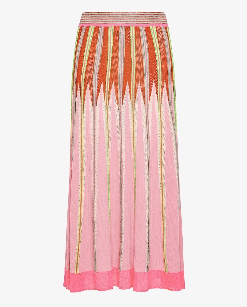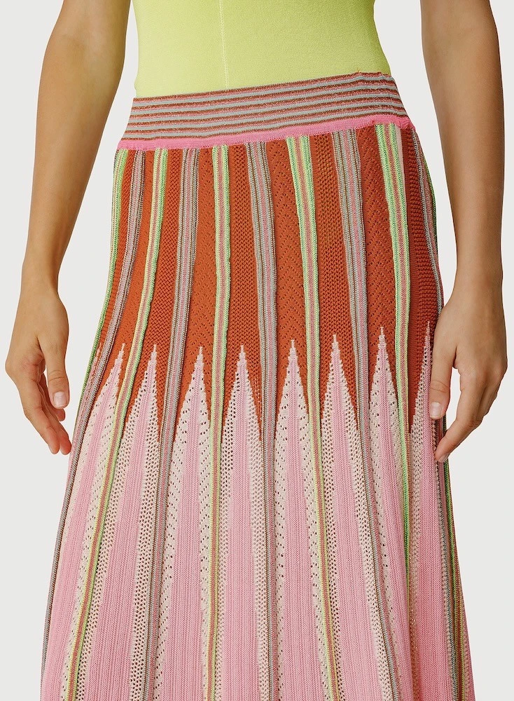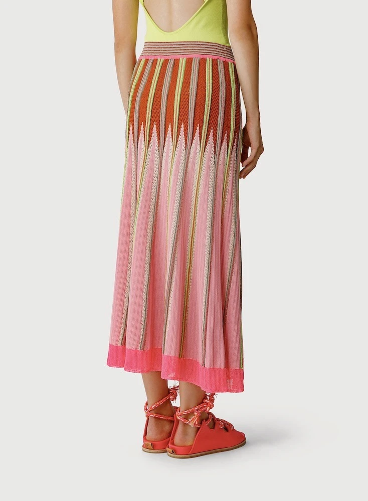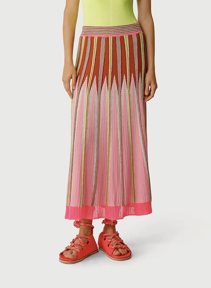 Jupe taille élastiquée mi- longue, motif multicolores.