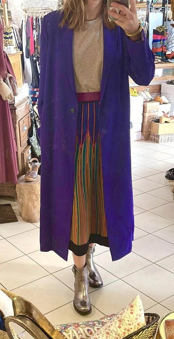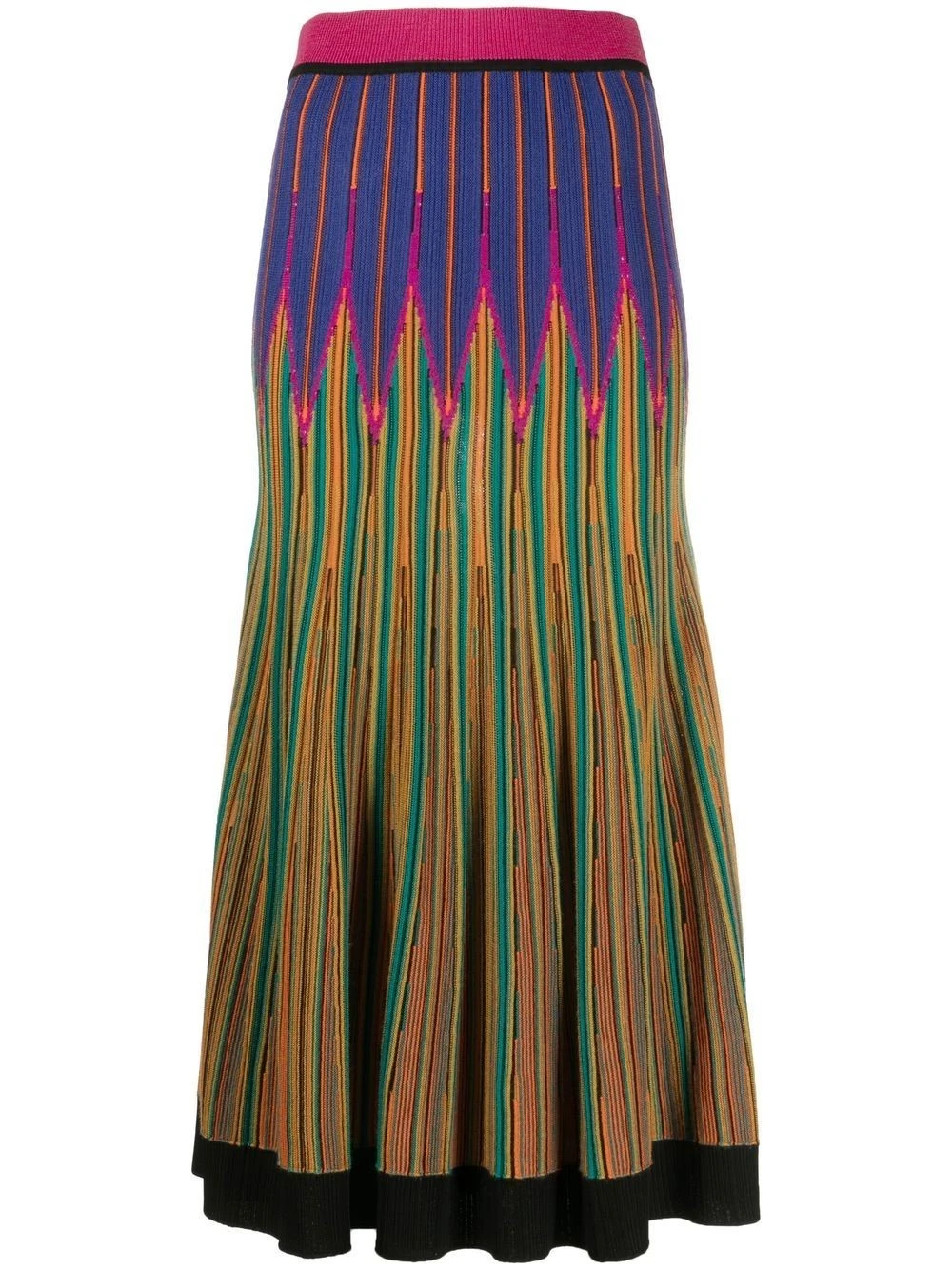 Jupe taille élastiquée mi- longue, motif multicolores.