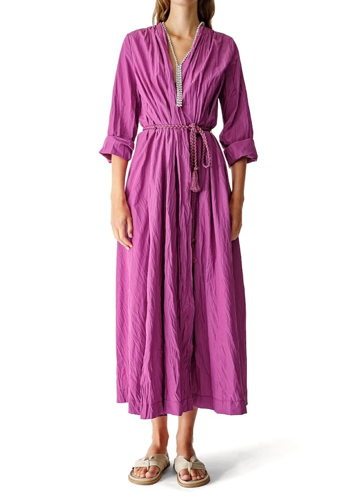 robe longue en taffetas violet.