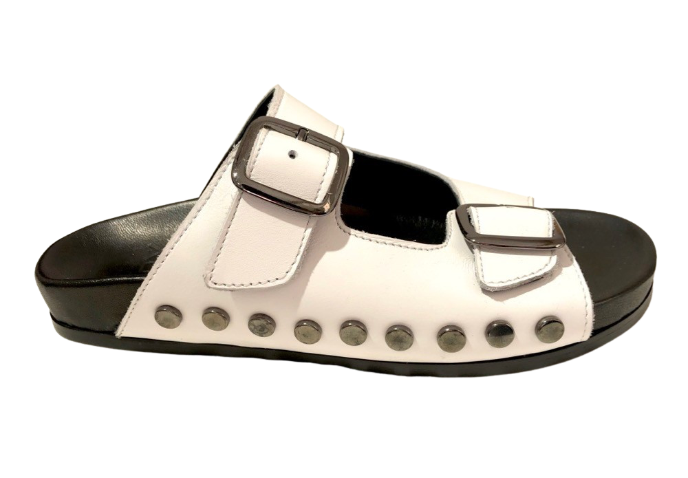 Sandales plates à double sangle réglables en cuir lisse blanc.