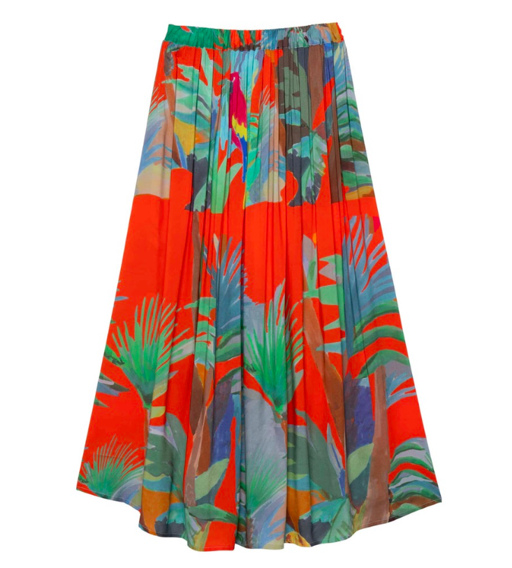 Jupe longue en viscose fluide, coupe évasée. Taille haute et élastiquée.