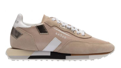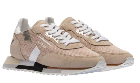 Sneakers running en nylon et daim beige.