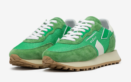 Sneakers running en mesh et daim vert.