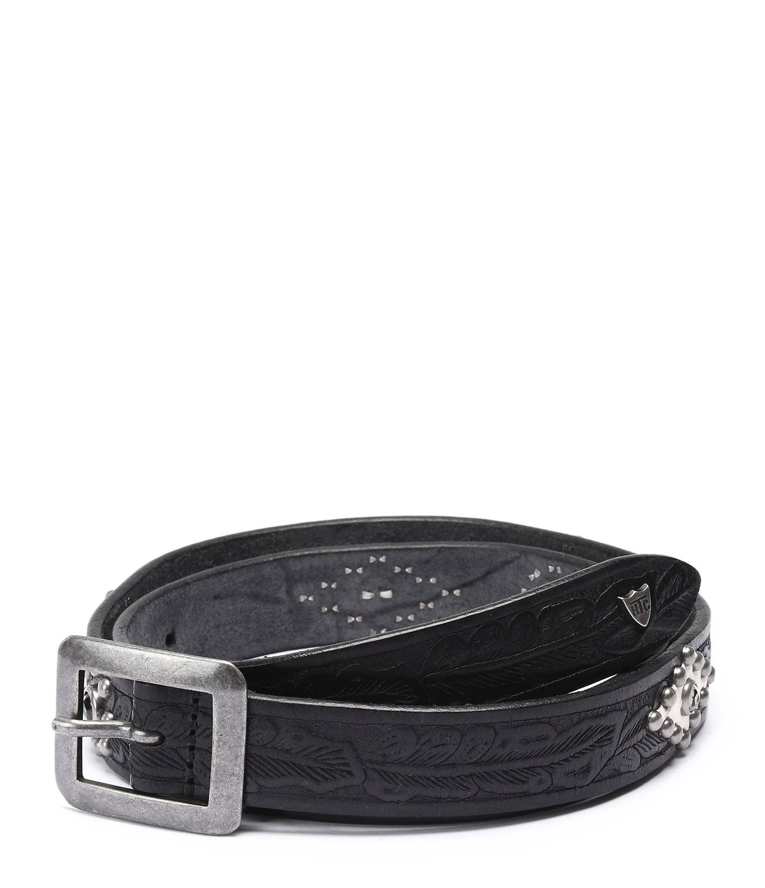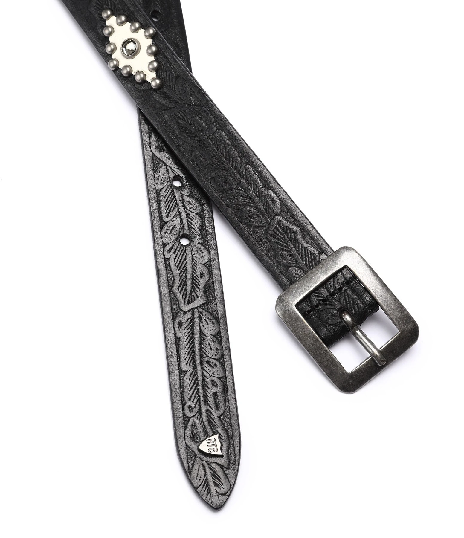 Rock HTC Los Angeles Ceinture en cuir, gravée et décorée de losanges et rivets métalliques. Fermoir boucle avec cinq positions.