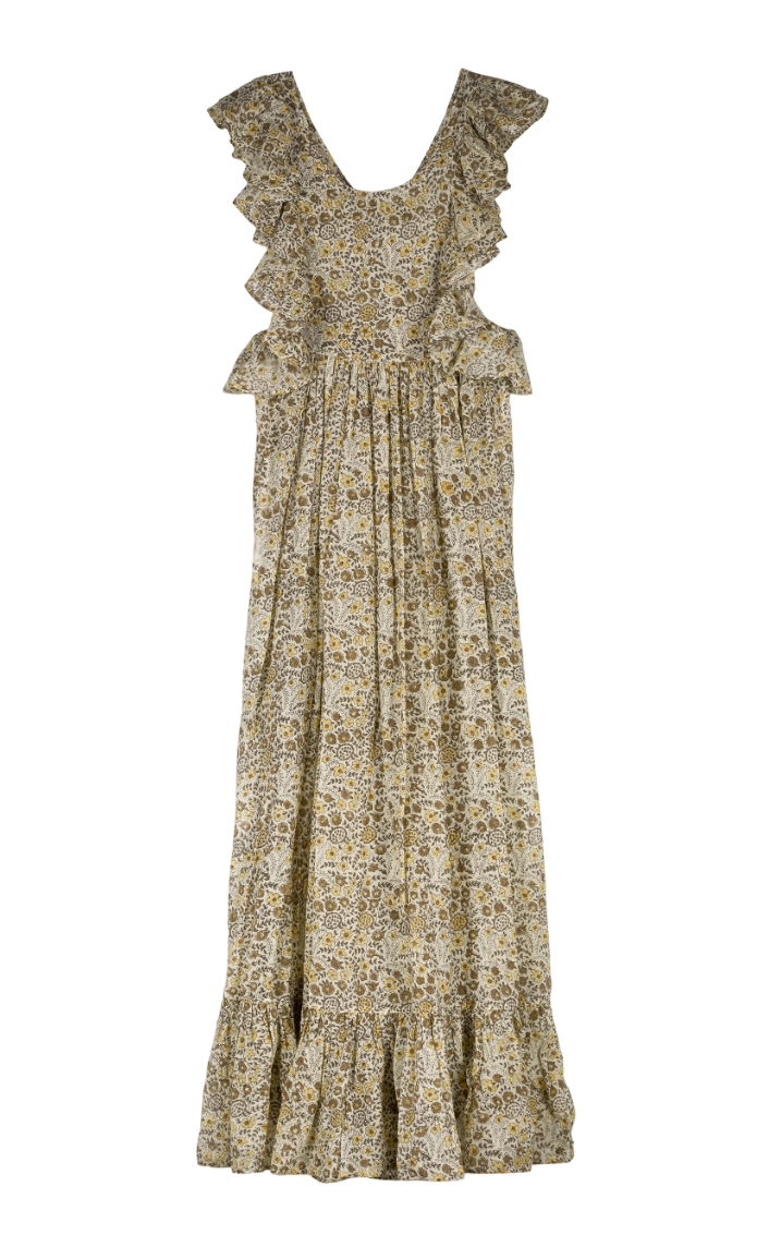FILLETTE robe Laurence Bras Robe longue en voile de coton imprimé fleuri, volant sur les épaules.