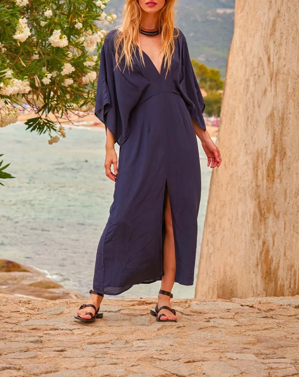 SOUANE robe Mare Di Latte Robe longue en soie, décolleté en V, ajustable.