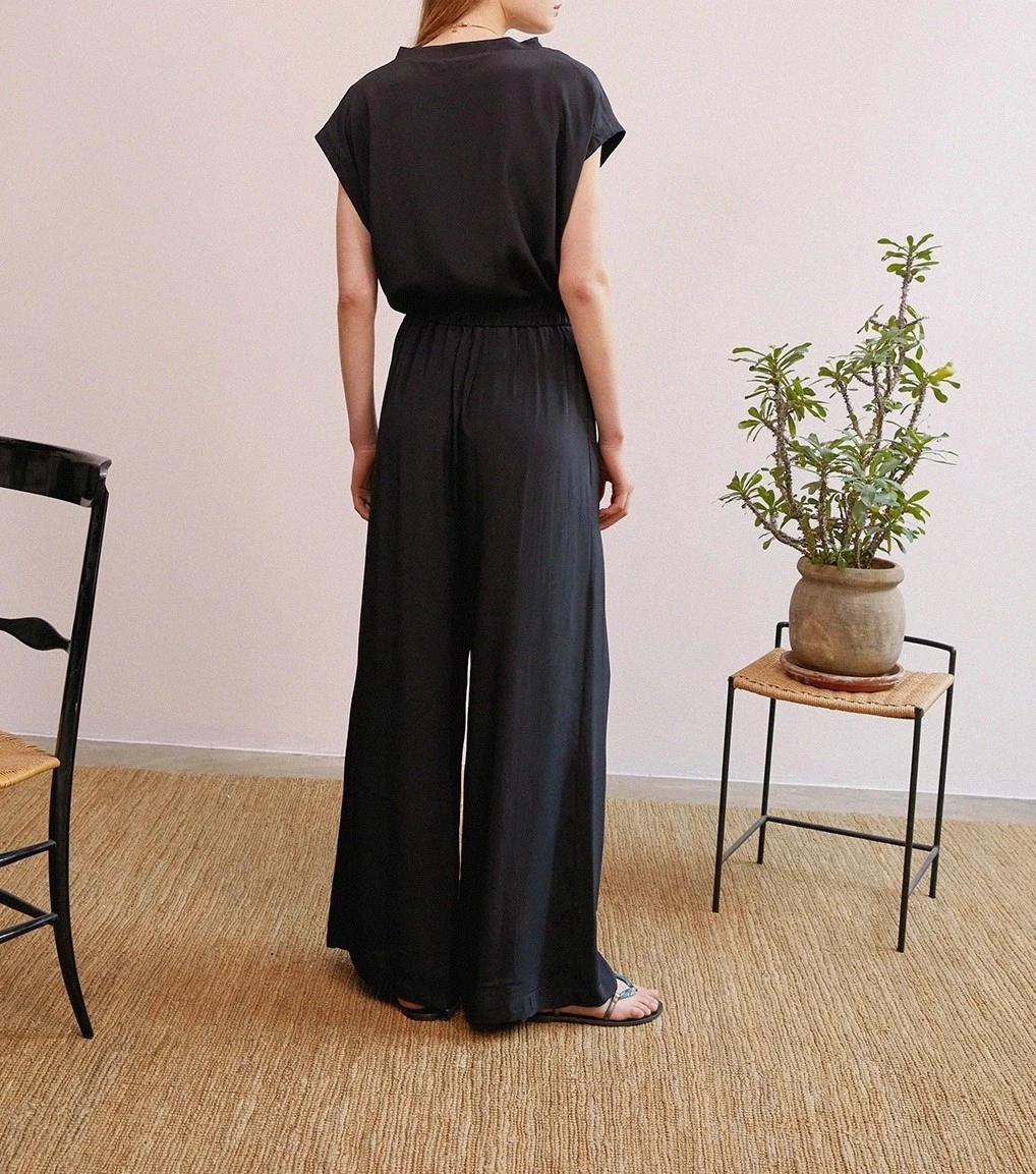 Taille élastiquée à l’arrière, poches insérées sur le côté.