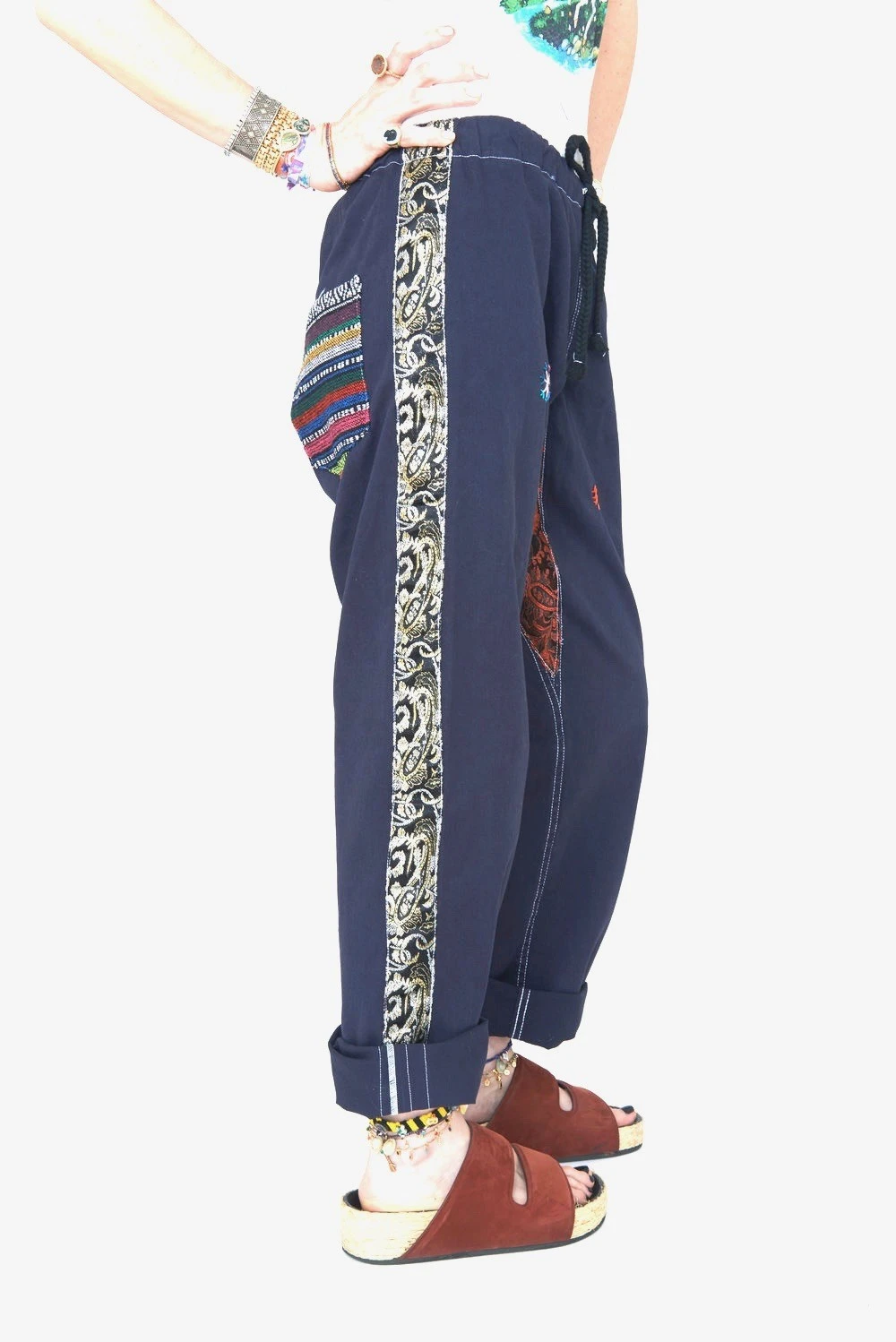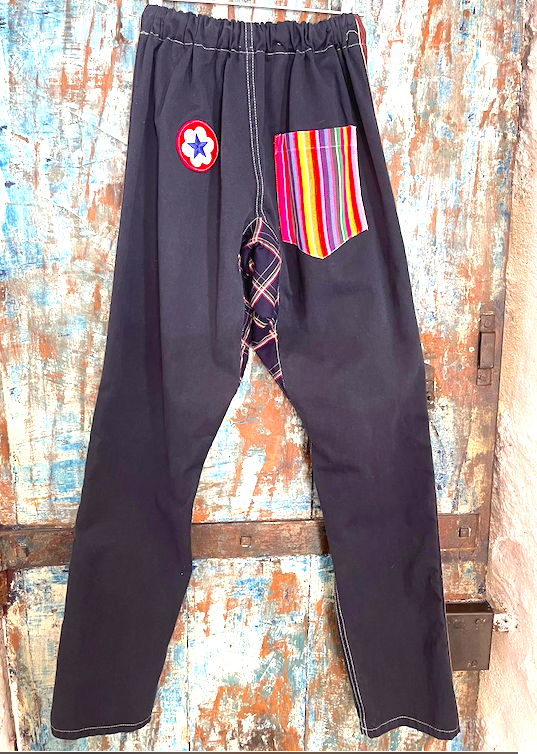 Les pantalons sont en 100 % coton, de la même matière que la veste de kimono LE VOYAGEUR.