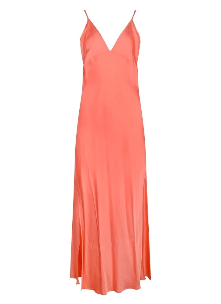 Robe mi-longue en viscose à bretelles, décolleté en V.
