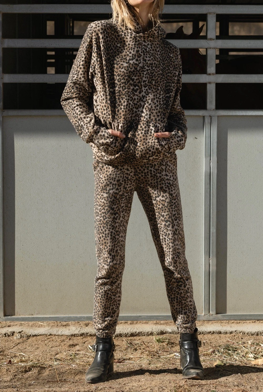 L’incontournable de la marque, le jogging, tout doux et confortable. Ici en version imprimé léopard marron.