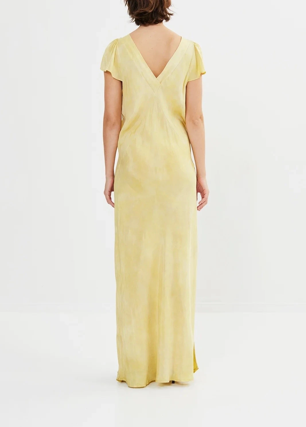 Robe longue en viscose, coloris charcoal, coupe droite et fluide.