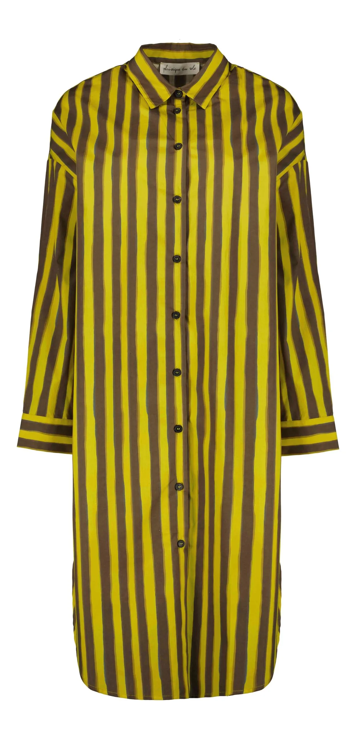 Pièce unique et originale PHISIQUE DU ROLE, cette robe chemise mi-longue en coton léger. Imprimé exclusif à rayures jaunes et marrons PHISIQUE DU ROLE.